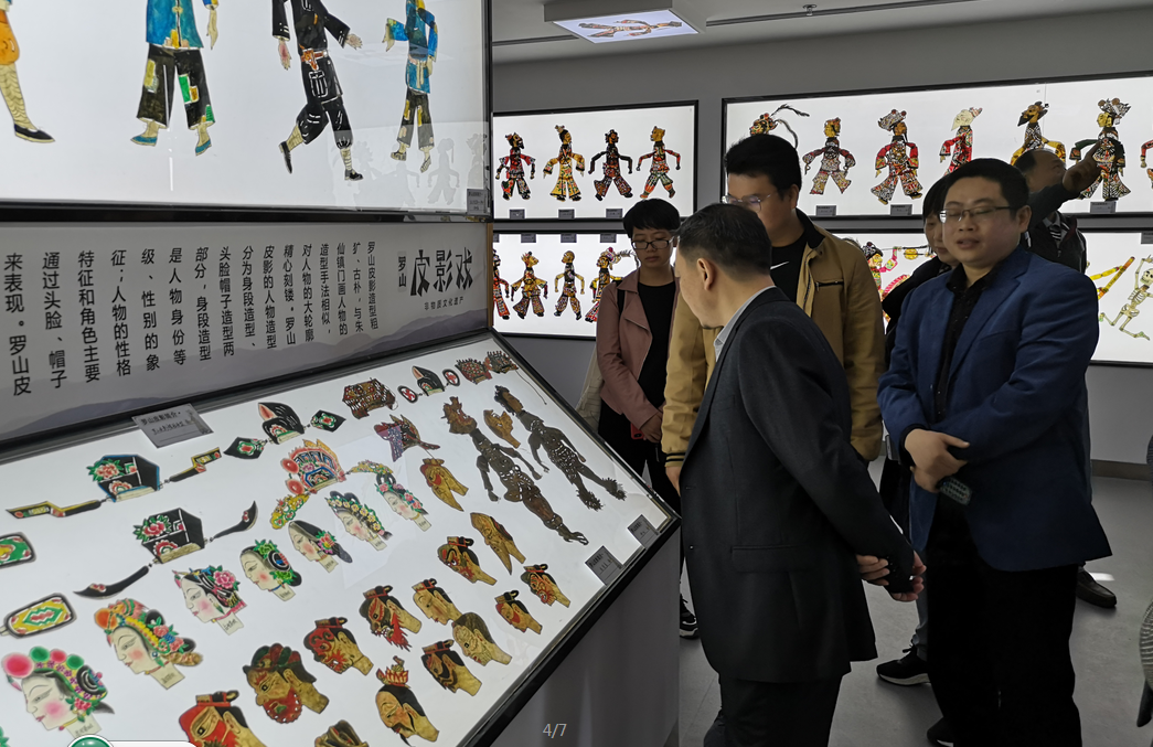周峰等人仔细观看并了解了罗山皮影戏、信阳民歌、光山花鼓戏、信阳毛尖茶采制技艺、商城丝弦锣鼓、信阳剪纸、商城叶雕等国家级、省级非物质文化遗产项目,对信阳地区丰富的优秀传统文化有了充分的了解,对太阳成tyc7111cc传承馆的建设给予了高度的赞扬。