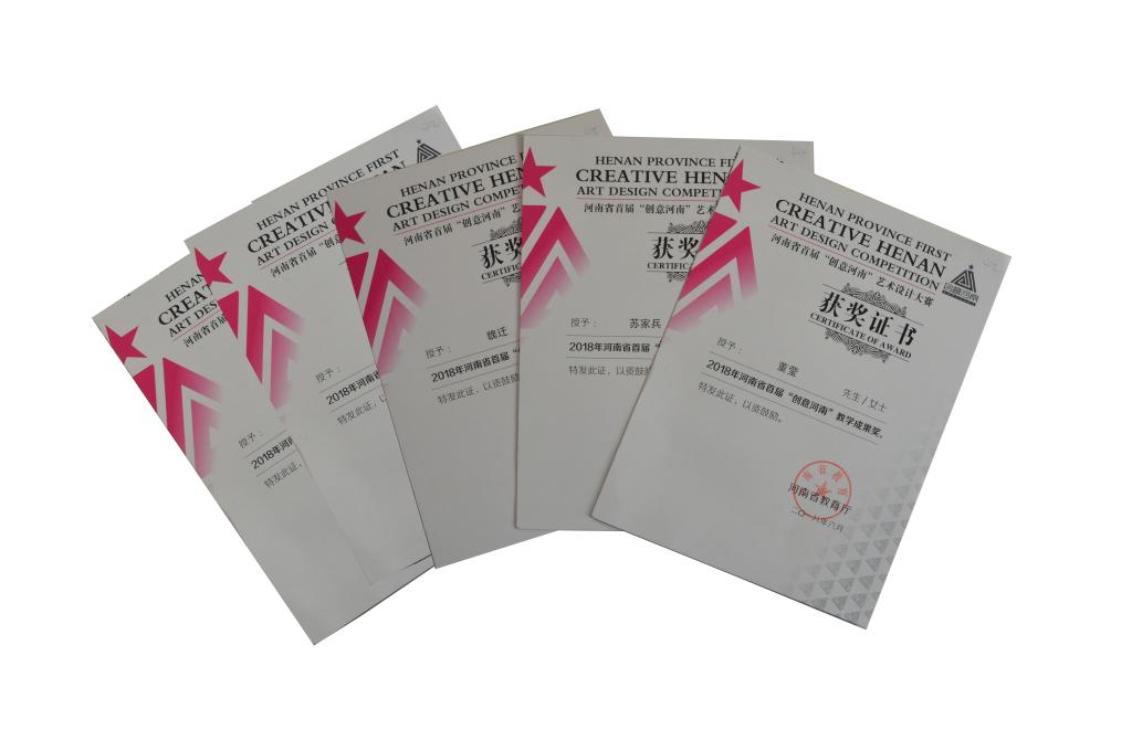 在河南省首届“创意河南”艺术节设计大赛中,我校视觉传达专业魏迁、董莹、等五位教师荣获教学成果奖。