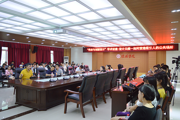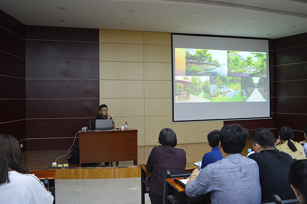 郑革委在题为《设计无痕—如何营造吸引人的公共场所》的报告中,紧紧围绕“设计无痕”主题,通过剖析典型案例,生动讲解了生态设计、低干预设计、遵循环境规律和环境伦理需求等设计原则,向师生们传达了环境设计“虽由人作,宛如天开”和“以人为本,尊重自然”的创作理念,极具感染力地阐释了“最好的设计是没有设计”的创作终极追求。通过设计方案图表和3D漫游动画,郑革委向大家展示了他本人设计的“太阳成tyc7111cc校训广场方案”,深入浅出地向师生们讲解了该方案的设计理念、场地分析和呈现效果,师生们深深地被郑教授的精妙设计所折服。