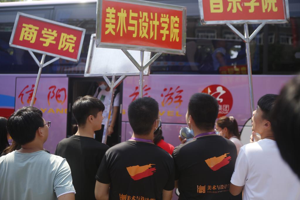 学院高度重视2020级新生报到工作,迎新前期,学院成立了迎新工作指导小组,在学院领导张瑞瑞、袁军的亲自指挥和统筹下,学院做好了迎新各项准备工作。迎新期间,辅导员老师、院学生会不畏炎热,有条不紊地为新生办理入学报到手续,详细耐心地解答新生及家长咨询的各类事宜,负责疫情防控的工作人员及时为新生测量体温,检验健康码、行程码,为行李物品喷洒消毒液。与此同时,学院外派出五十余名学生志愿者,分别前往信阳市火车站、高铁站、汽车站,及学校北大门、新七大道志愿服务点,开展服务引导、接待执勤、路面清扫等工作,全方位、立体化地保障了2020级新生顺利报到、安全入校。