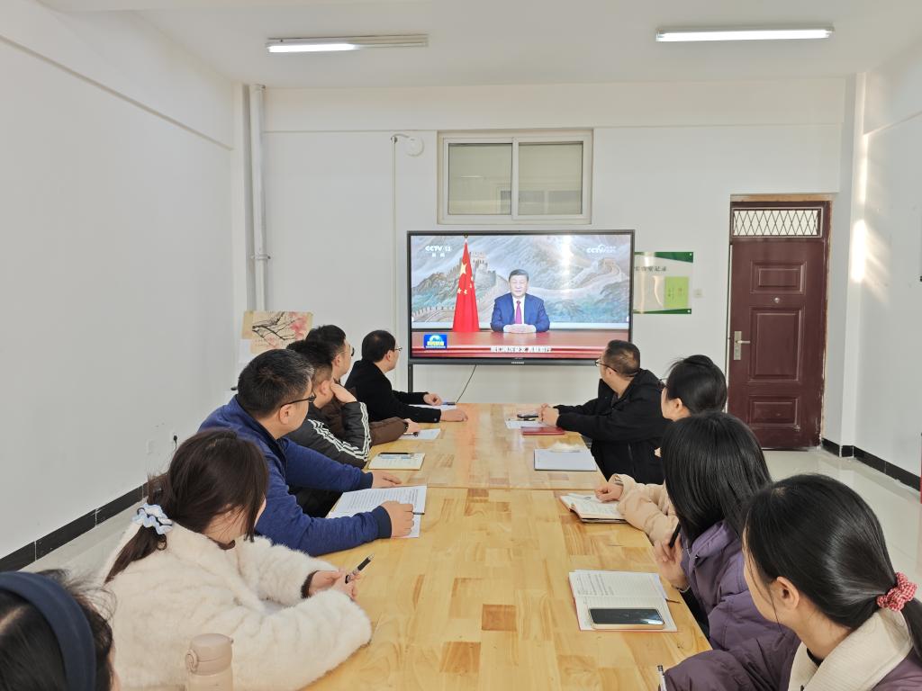 会上,全体参会人员集中观看了习近平总书记二〇二六年新年贺词视频。教工第三党支部书记周连峰带领全体人员深入学习《习近平谈治国理政》第五卷中“把中国文明历史研究引向深入,增强历史自觉坚定文化自信”篇目。秦金峰、李静分别结合学习内容和分管工作作了交流发言。