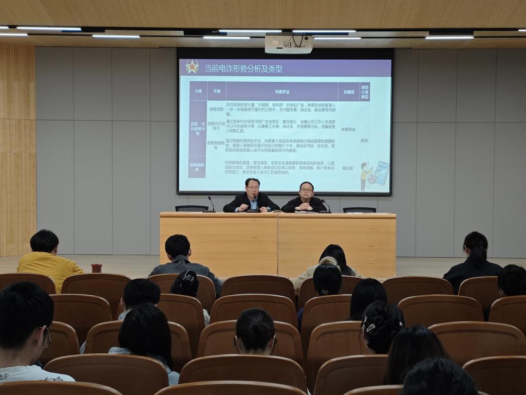 郑山峰面向全体教职工作了题为《防范电信诈骗共建平安校园》的反诈专题培训,结合常见的诈骗类型,拆解诈骗套路、讲解防范技巧,引导全体教职工增强安全防范意识,主动参与平安校园建设,共同守护自身及学生的财产安全。