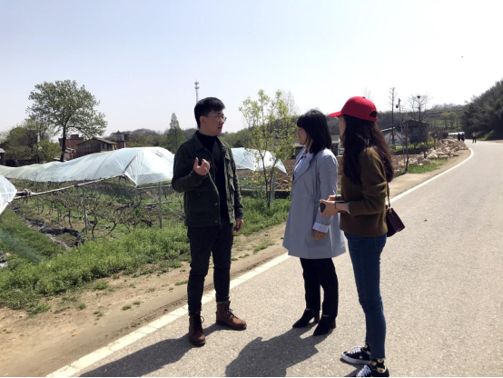 我校领队教师与新县八里畈镇副镇长邱蕾在丁李湾村交流调研情况