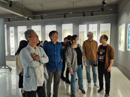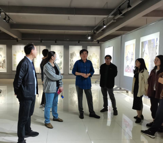 张瑞瑞和带领各位老师参观展厅,认真检查了每幅作品,和教授们一起把控创作质量,并且给出了针对性的评价和建议。