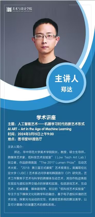 学术讲座预告——郑达《人工智能艺术——机器学习时代的新艺术形式》