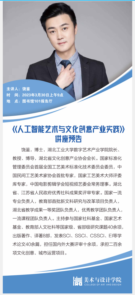 讲座预告:《人工智能艺术与文化创意产业实践》
