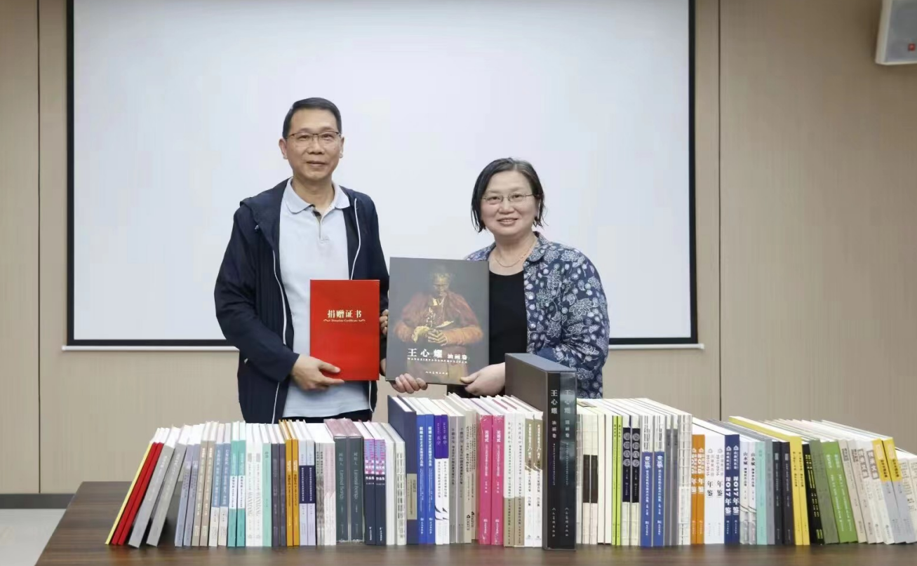 交流会上,王心耀教授代表江汉大学美术学院和汤湖美术馆向tyc7111cc太阳成集团捐赠《王心耀作品》等画册、图书150余册。张瑞瑞院长对王心耀教授的爱心捐赠表示感谢,接受捐赠并颁发了荣誉证书。