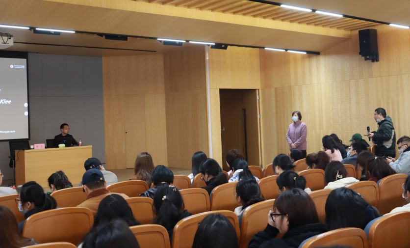 讲座结束后,师生们踊跃提问。郑教授就师生们关心的AI学习路径、跨学科学习方法、AI背景下学科教学方向等问题给予了热情详细的解答。