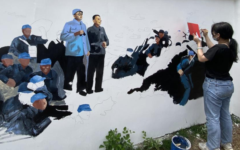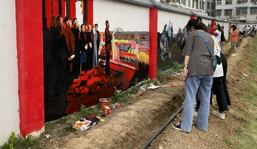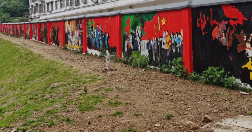 本次墙绘以党的革命史、建设史、改革史为时间主线,以党史学习为主题意义,选取30余幅涉及党的重大历史为直观内容,从五四运动到抗日战争,从开国大典到抗美援朝,从两弹一星到神舟飞天,从全民抗疫到脱贫攻坚,组成了一幅波澜壮阔的历史长卷。
