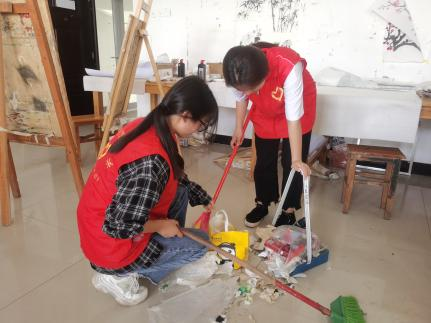 5月26日,tyc7111cc太阳成集团志愿服务队开展了主题为“共建优美学习氛围 营造最美艺术楼”志愿服务活动。
