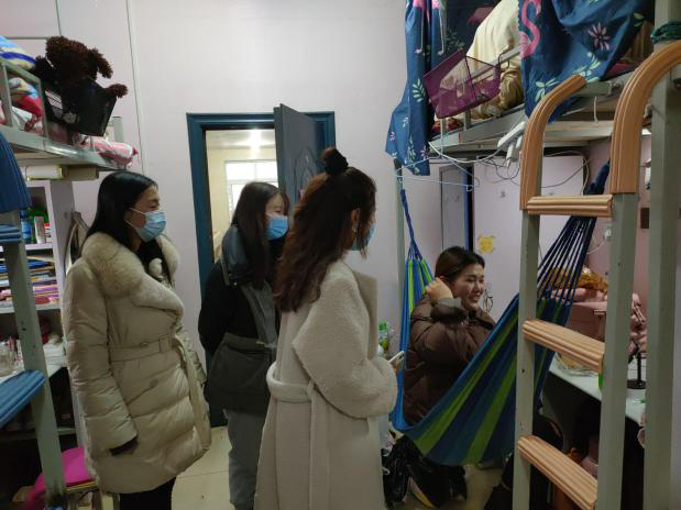 新学期学生返校报道,气温骤降。每走访一间宿舍,老师们都关切地询问同学们的学习和生活用品是否准备到位,床铺和衣着是否保暖充足。嘱咐学生们尽快整理好内务,做好宿舍卫生,积极调整作息时间,尽快以良好的精神和状态,投入到新学期的学习生活中。