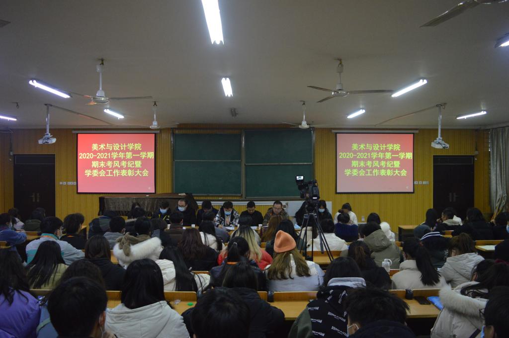 为严肃考风考纪,保障本学期期末考试工作顺利进行。12月24日晚,tyc7111cc太阳成集团在艺术楼101室召开2020-2021学年第一学期期末考试考风考纪教育大会暨学院学委会表彰会。学院党总支副书记袁军、教学秘书周连峰、学工干事周扬、全体辅导员、教学资产管理员路凤云,学院第九届学委会全体学生干部、各年级班级学生干部代表参加了本次会议。会议由周连峰主持。