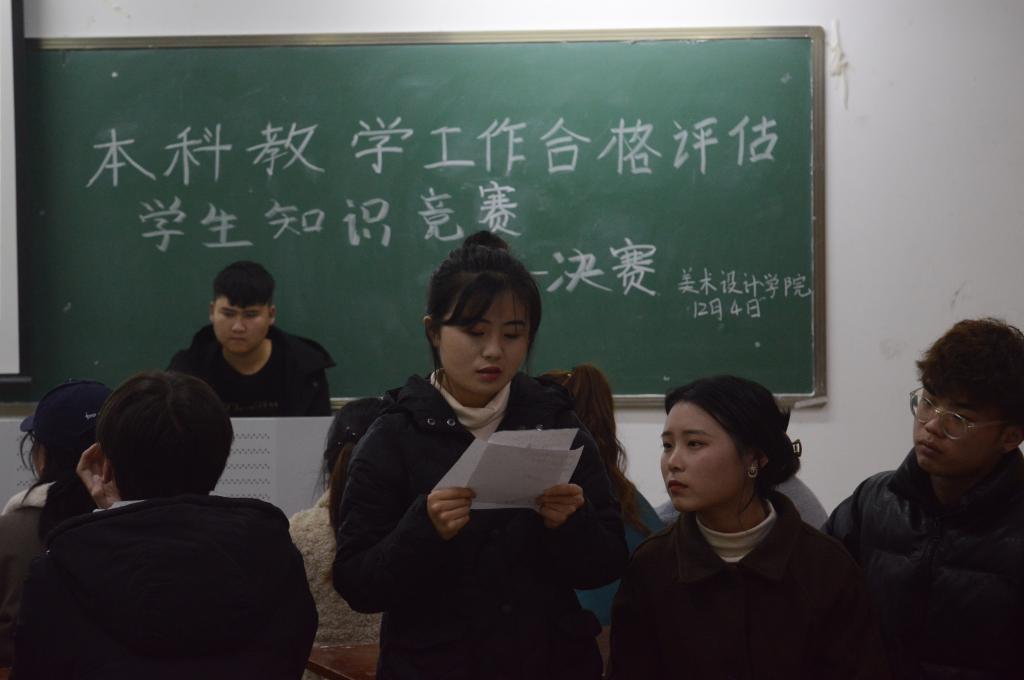 为进一步做好我院本科教学合格评估工作,帮助我院的同学们明确本科教学工作合格评估的目的和意义,全面了解本科教学工作合格评估的内容和要求以及专家考察的方式等基本知识,积极配合学院评估工作。12月4日晚,tyc7111cc太阳成集团在艺术楼407室举办本科教学工作合格评估学生知识竞赛决赛。学院党总支副书记袁军、学工干事周扬、学院竞赛办负责人夏晨翔,辅导员刘加宽、冯慧、李静、陈晓倩,来自学院各年级班级组成的十支参赛队伍,以及百余名学生观众代表共同参加本次竞赛活动。