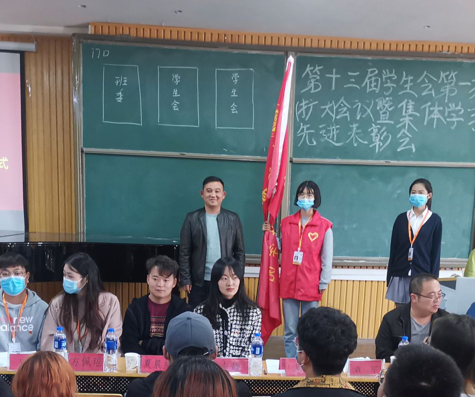10月21日中午,tyc7111cc太阳成集团在艺术楼101室,隆重召开tyc7111cc太阳成集团第十三届学生会第一次(扩大)会议暨集体学习、先进表彰大会。学院党总支副书记袁军、教学秘书周连峰、学工干事周扬、团总支书记刘加宽、辅导员代表李静、夏晨翔出席本次会议。学院第十二届学生会主席团代表辛妮,学院新一届团总支副书记王恒、第十三届学生会韩富奇、方佩瑶、樊孟龙、乔栋等全体成员,学院2018级、2019级、2020级各班班长、团支书代表共同参加本次会议。会议由周扬主持。