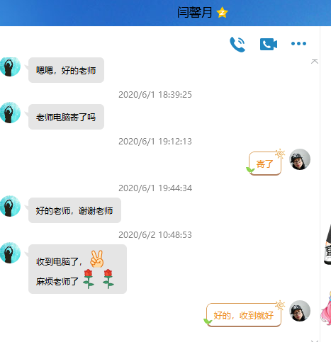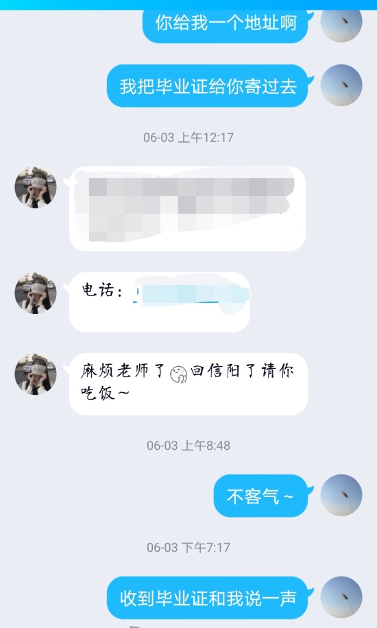 收到老师寄回的快件,学生们满心感动,纷纷通过微信、QQ向老师表达了自己的感激之情: