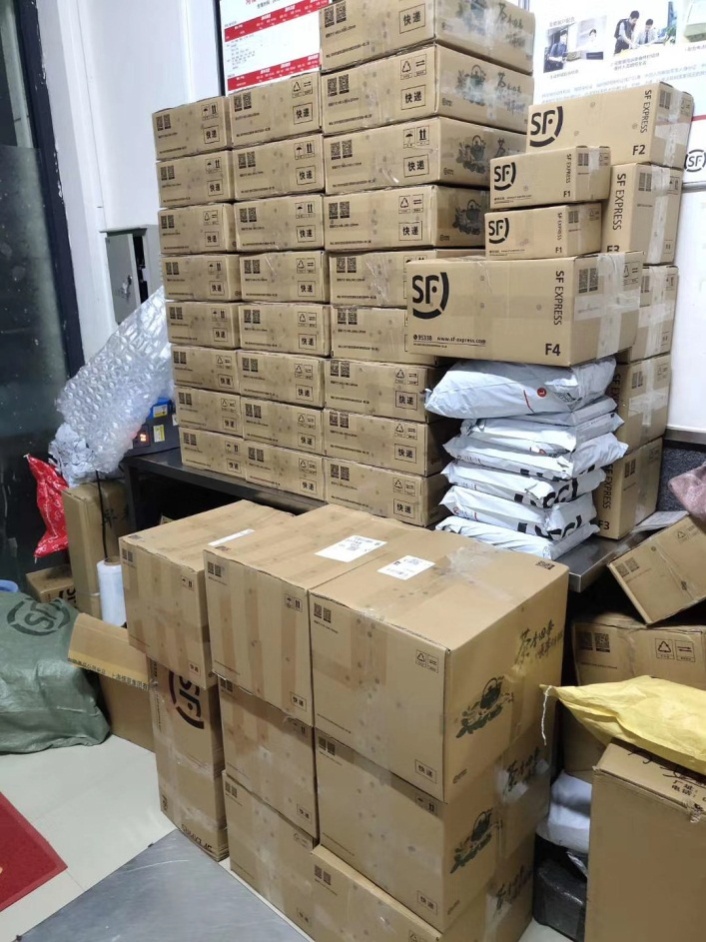 目前,已寄送快递近千单,其中课本200多本,电脑200多台,衣物500多件套。