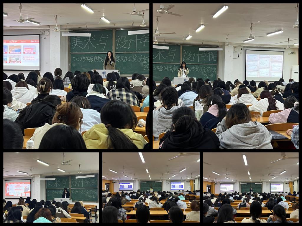 颁奖典礼结束后,学院随即启动“优秀学子进班级”宣讲活动。五位获奖同学分别走进各专业班级,结合自身成长经历,分享了学习方法、时间管理、科研实践与励志故事。郑佳怡围绕专业精进与综合发展,讲述如何在学业与创作之间实现平衡;江宝玉、高蒙蒙、张心果、乔菲儿则从克服困难、励志进取的角度,鼓励同学们坚定信念、脚踏实地。真挚的分享引发了广泛共鸣。