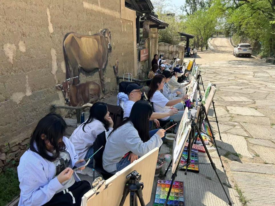 鸟语茶香,春风徐徐。近期,美术学专业2024级全体学生在任课老师项军、王俊、刘洪涛、周扬、李阳、刘君芮、张纹源的带领下,赴新县香山湖水塝村写生基地开展《色彩风景写生》课程。