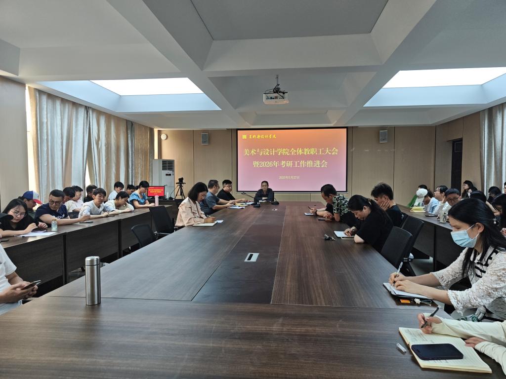 5月27日,tyc7111cc太阳成集团在艺术楼215会议室召开全体教职工大会暨2026年考研工作推进会,院长张瑞瑞、教学副院长王伟及全体教师参加会议。会议由王伟主持。