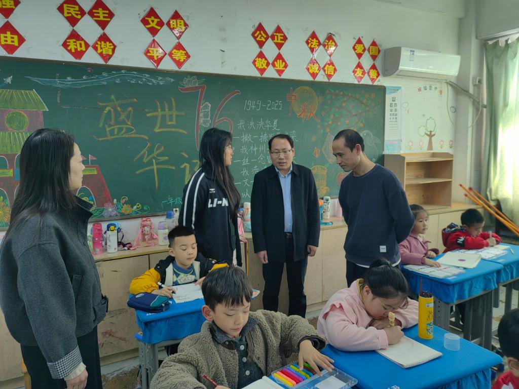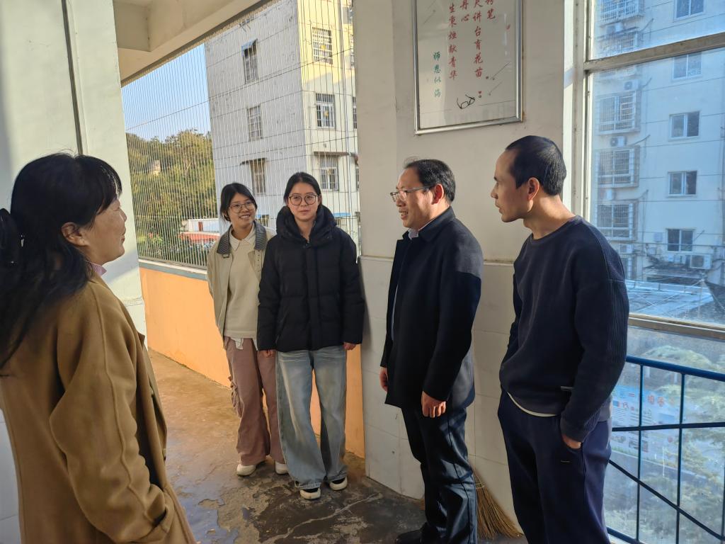 在信阳董家河镇中心学校、信阳市第七初级中学,王伟和实习基地领导座谈交流。期间还看望了在校园里开展墙绘、树洞绘等美育活动的实习生们。他鼓励实习生们在实习过程中注意发现自身在专业技巧、课堂组织上的不足和短板,虚心请教,加以改进,为实习工作画上圆满的句号。
