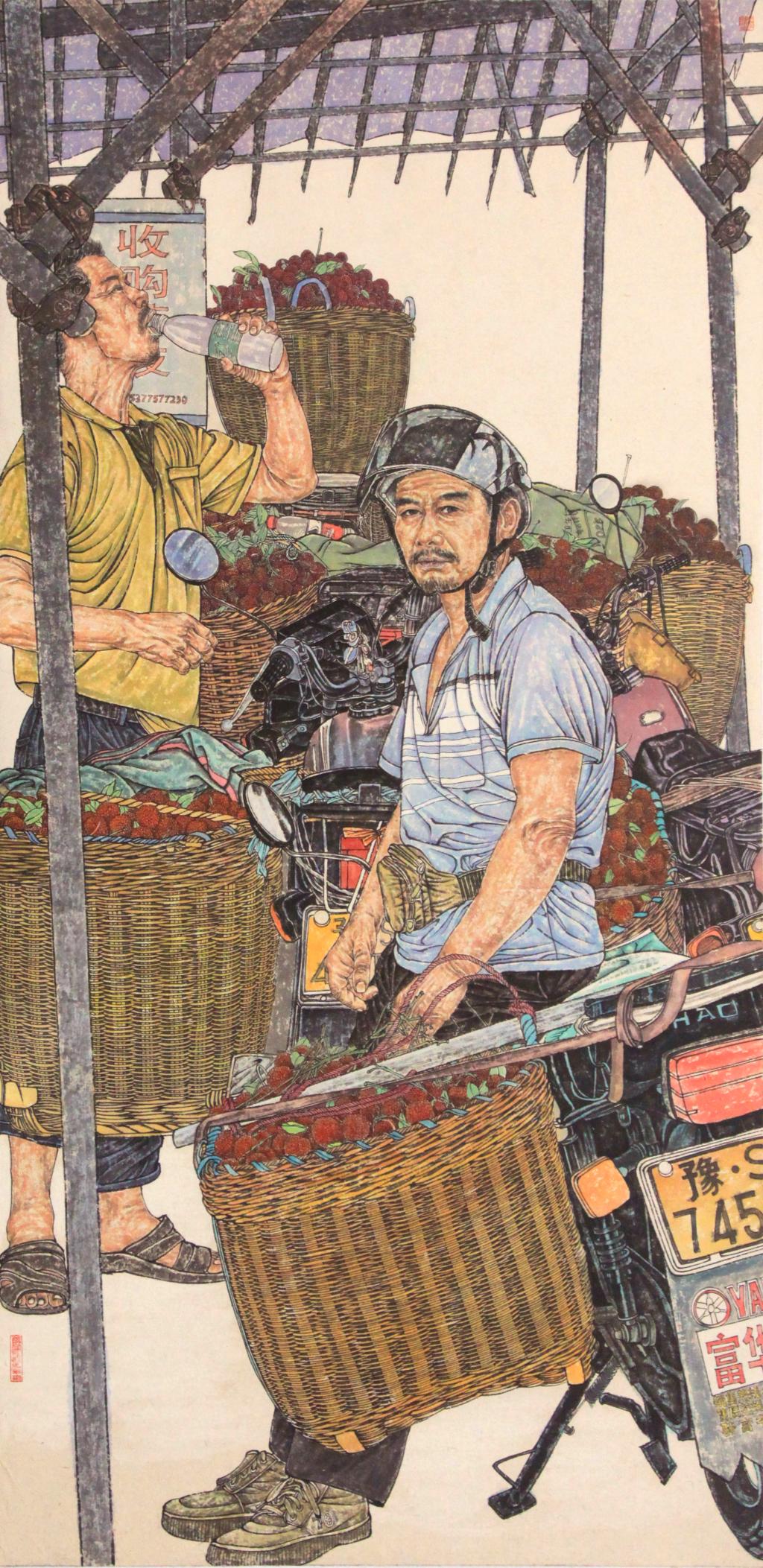 作者:陈官鹏 作品名:《荔枝红了》 画种:中国画 尺寸:136x68cm
