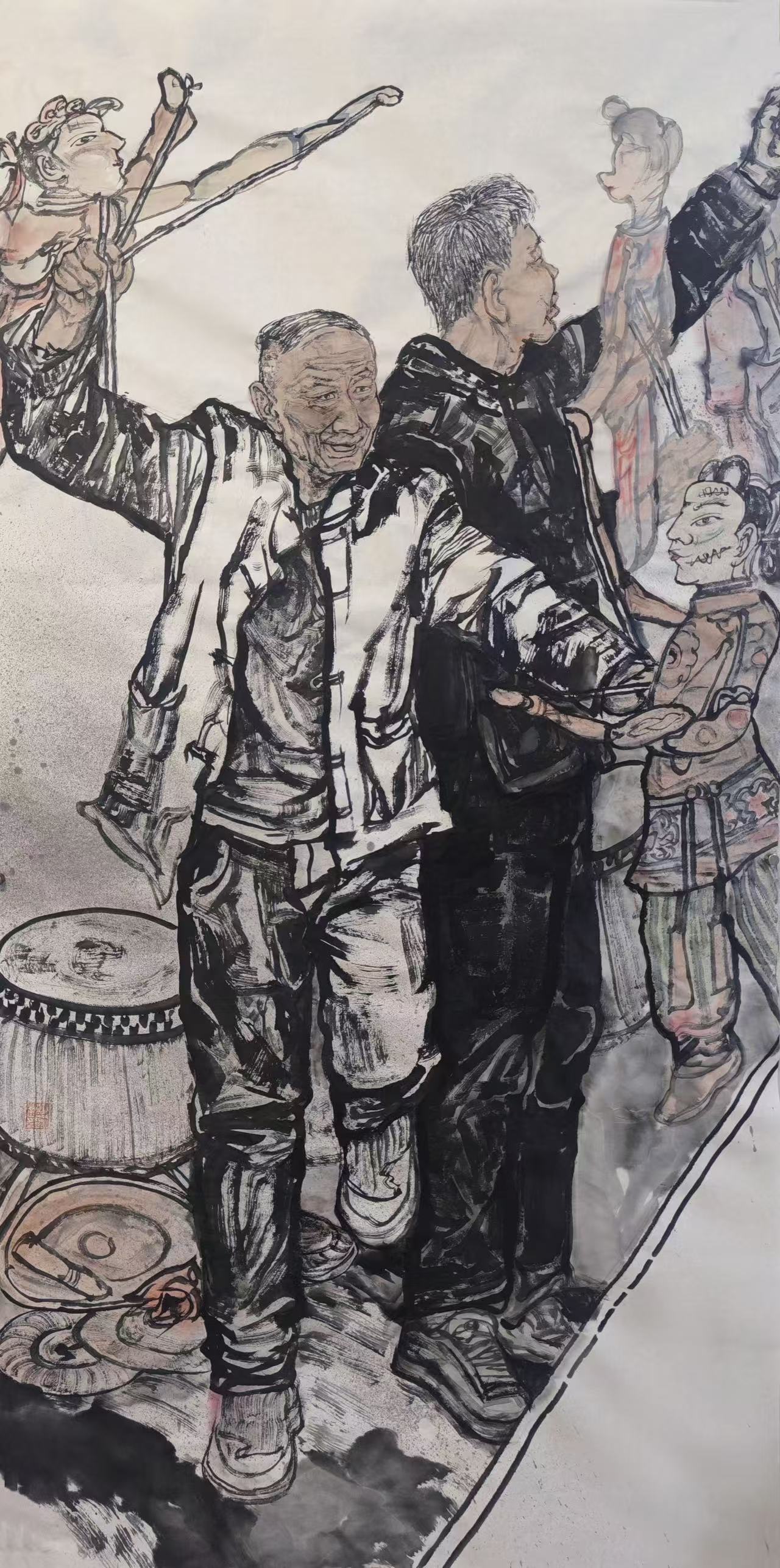 作者:彭瑜程 作品名称:《罗山皮影》 画种:中国画 尺寸:138x36cm